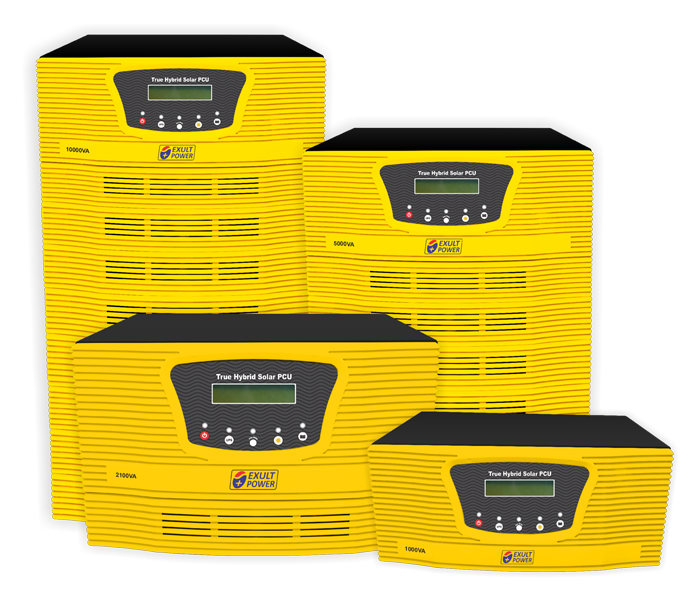 Solar Inverters are the need of times in this era of more and more use of Renewable Energy. Exult Power offers a wide range of Eco-Friendly Solar Inverters with Inbuilt 50A Solar Charge Controllers. Solar Inverters are the need of times in this era of more and more use of Renewable Energy. Solar Inverters can charge the battery from electricity and Solar that makes it a stable and reliable and stable source of power in Electricity Deficient Areas. Exult Power Inverters are in demand as these are durable, reliable and cost-efficient and environmentally friendly . Exult Power offers Inverters from the range of 1kVA to 10kVA.